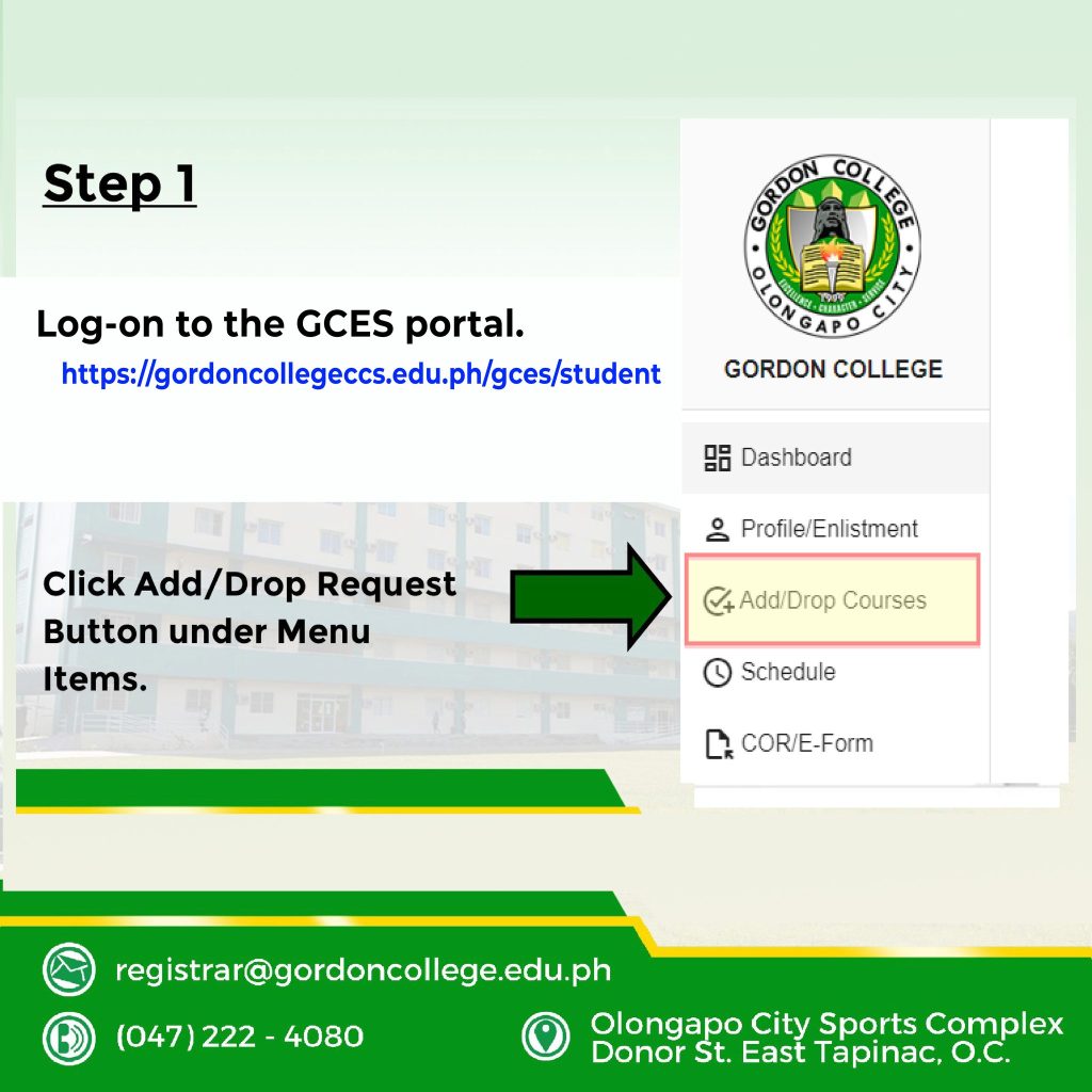 Log-on to the student portal (https://gordoncollegeccs.edu.ph/gces/student)