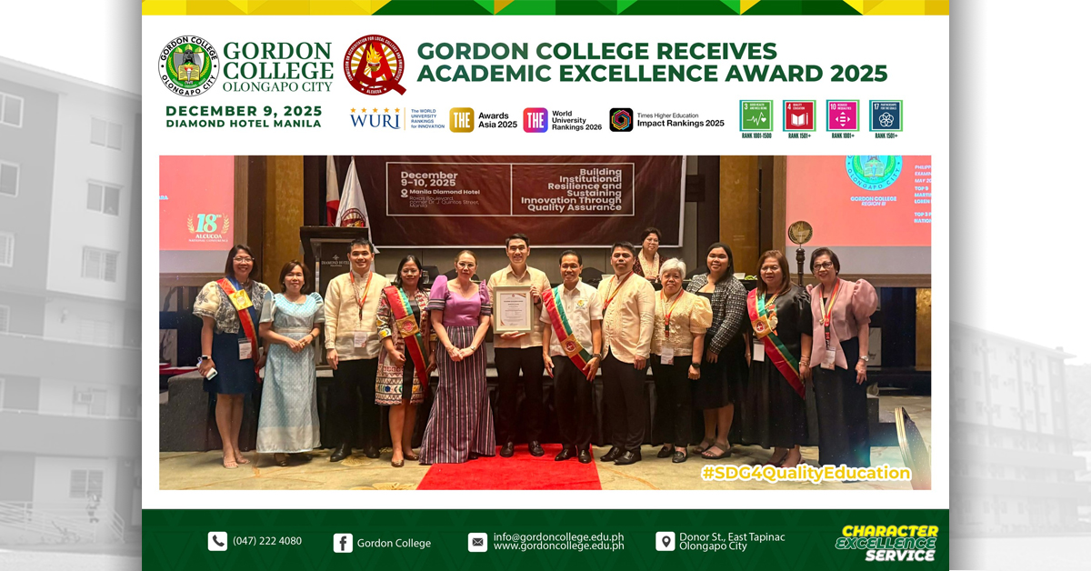 Gordon College has officially been granted Reporter Status in the recent Times Higher Education (THE) World University Rankings 2026, released last October 9.